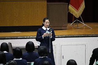 多くの祝辞をいただいたのち在校生からの送辞がありました。