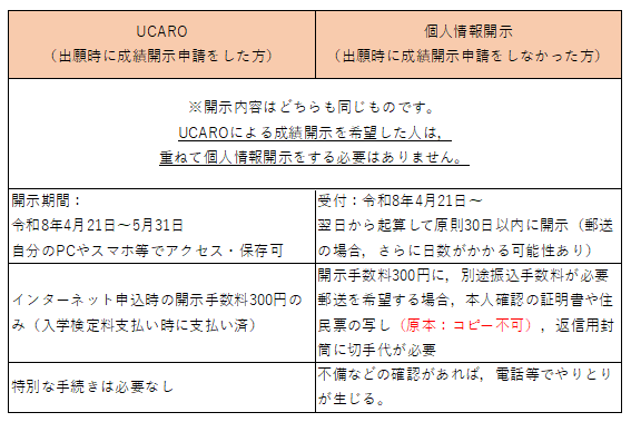 UCAROの開示期間(令和8年4月21日~5月31日)中に入試成績が確認できます。