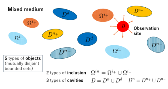媒質内の異物は指示関数の符号によって2種類に分けられる。指示関数を異なる符号にするような空洞が混在する場合に、空洞の位置、形状、種類と指示関数の主要項との関係を明らかにした。