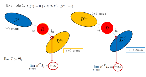 (1) 指示関数を正(負)にする異物を正(負)の異物と呼ぶ。まず、観測地点から各異物までの最短距離が一致しないことがあらかじめ分かっている場合について検討した。その結果、位置と符号に関する情報は、単一の種類の標的のみを考慮した従来の研究で用いられたのと同じ解析手法を用いて得られることを示した。(論文情報[1])