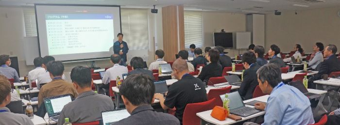広島大学・富士通の双方から産学連携の部門リーダーによる開会の挨拶に始まり、午前中は各大学SRLの研究紹介が行われました。広島大学からは量子化学計算、神戸大学からはマテリアルズインフォマティクス、筑波大学からは高性能データ基盤、そして東京科学大学からはスーパーコンピューティング基盤と、HPC分野におけるアプリケーションから計算基盤まで幅広い共同研究内容が紹介されました。発表後の質疑応答では、アプリケーションの実行効率を最大化するための基盤技術や、計算システムの性能を引き出すためのデータ処理技術など、コンピューティング領域において密接に関係している双方の観点から議論が展開されました。