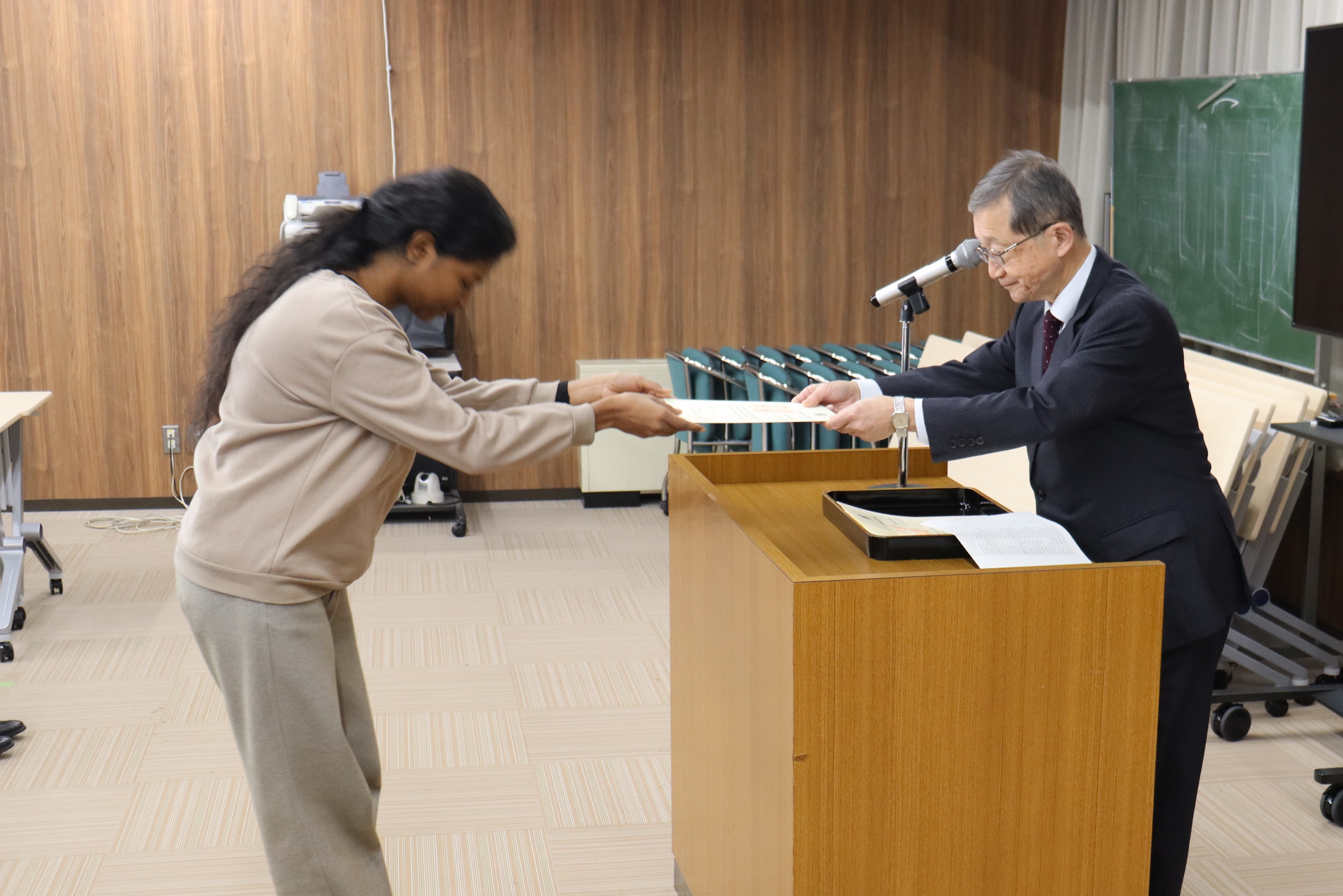 令和7年12月18日、先進理工系科学研究科において、令和7年度広島大学「エクセレントスチューデントスカラシップ」成績優秀者の表彰状授与式を行いました。