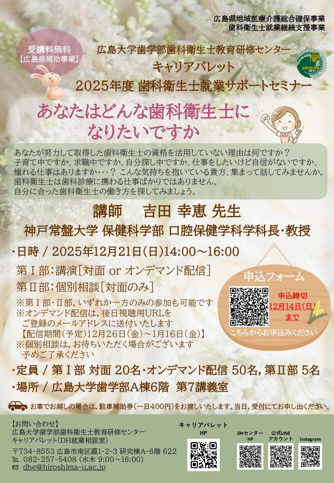 2025年12月21日(日)に「歯科衛生士就業サポートセミナー」を開催します。