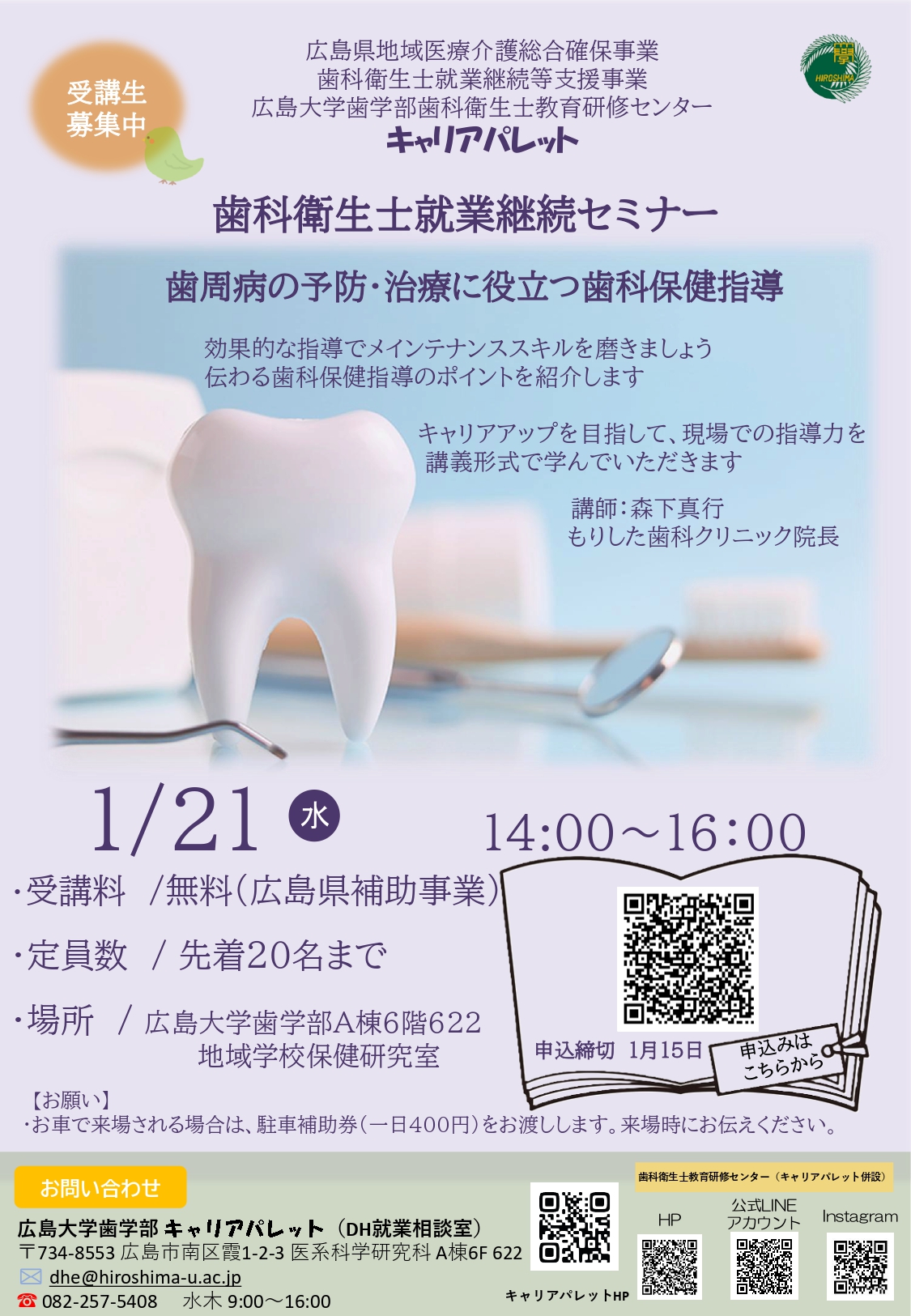 2026年1月21日(水)に「歯科衛生士就業継続セミナー」を開催します。