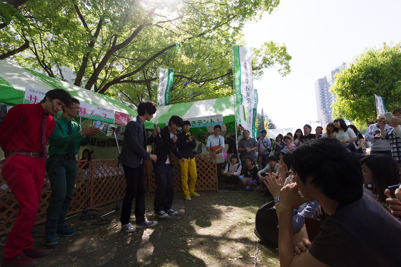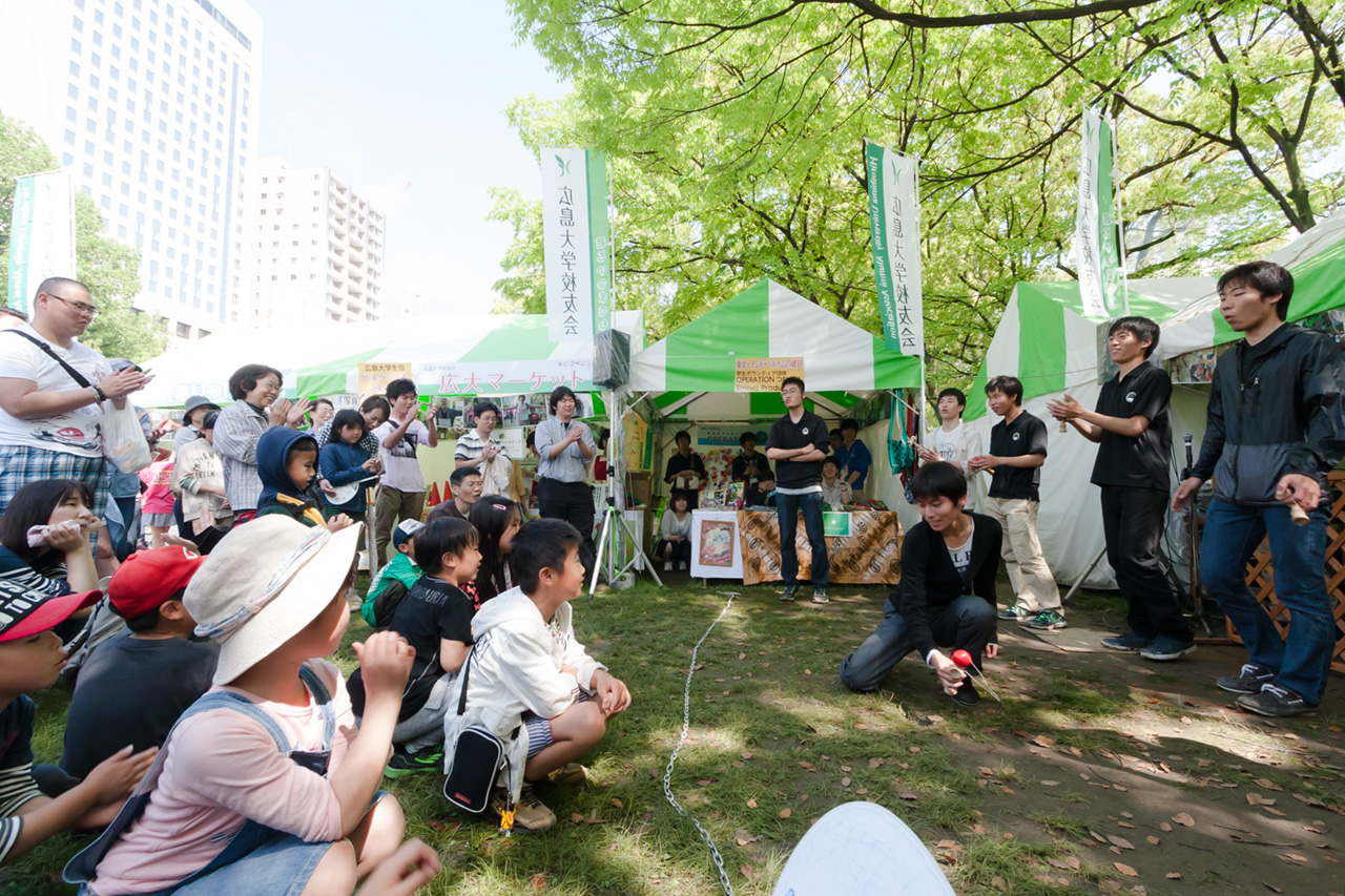 『パフォーマンスエリア』では,けん玉サークル「DAMAけん」によるけん玉ショー&教室,お笑いサークル「"(笑)"」によるお笑いライブ,大道芸サークル「遊技団」によるパフォーマンスショー,マジックサークル「ジャック・オ・ランタン」によるマジックショー,今年復活した「応援団」によるパフォーマンスを行いました。