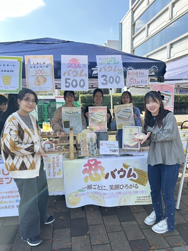 11月1日に行われたホームカミングデーにて、教育学部第四類人間生活系コース・家政教育プログラムから「しましまレモン」と「恋バウム」という2つのスイーツ開発をしているグループがスイーツなどの販売を行いました。