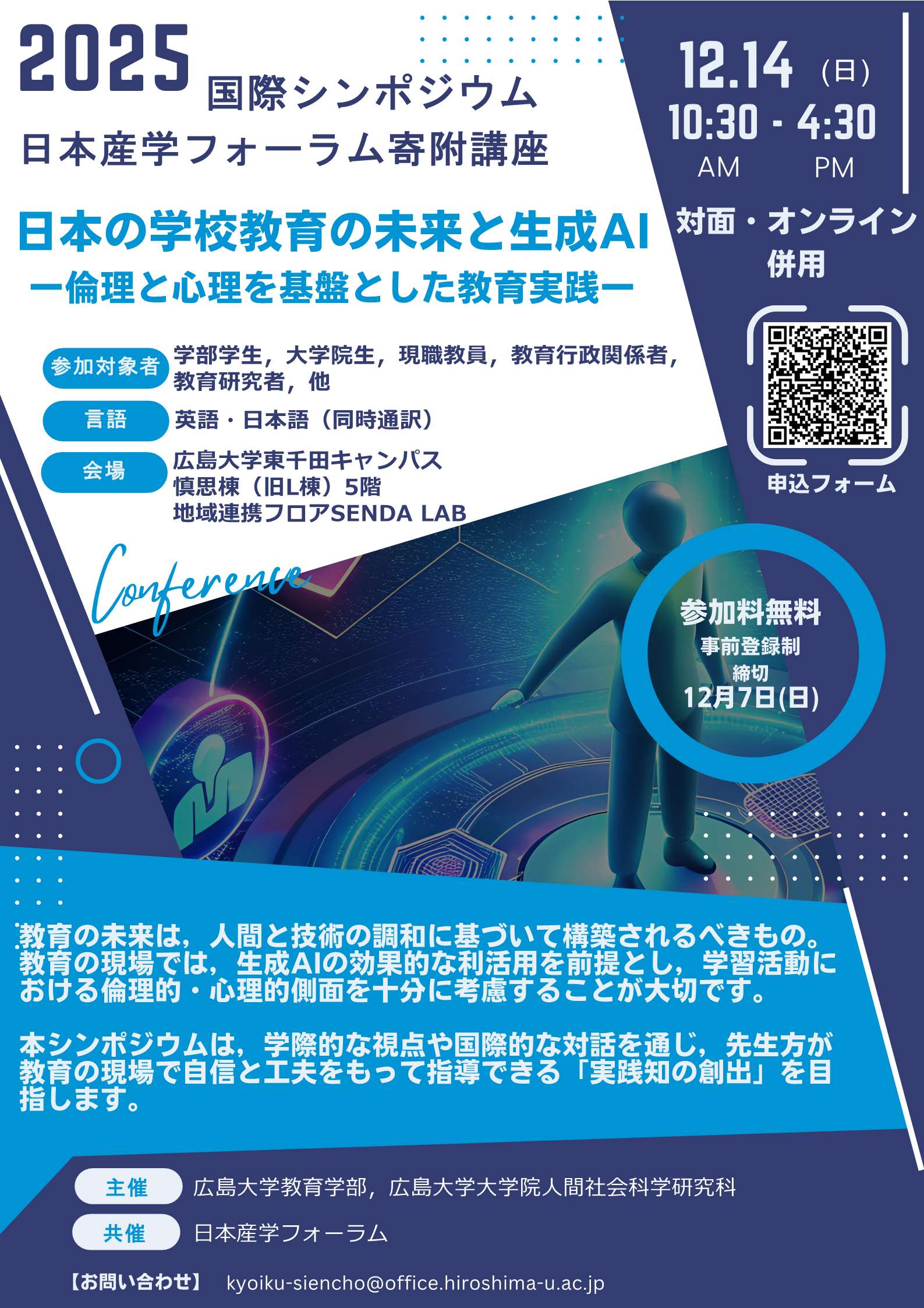 【2025/12/14開催・東千田】教育学部が国際シンポジウム「日本の学校教育の未来と生成AI-倫理と心理を基盤とした教育実践」を開催します。(参加無料・一般歓迎・同時通訳あり)