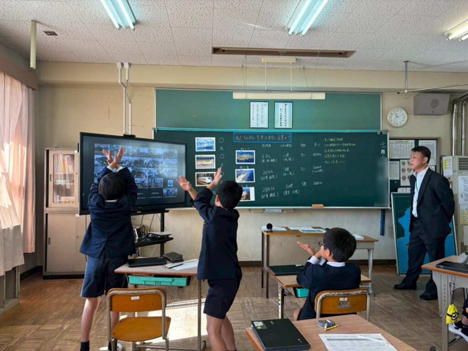 この結果を踏まえ、草原教授から「新幹線も高速道路もある広島の学校の皆さん、広島空港はいらないのでは?」「船も使える利尻島や徳之島の学校の皆さん、空港はなくても大丈夫では?」という、空港の存在意義を根本から問う投げかけがなされました。 空港があることを「当たり前」と捉えていた多くの児童にとってはこの問いかけが揺さぶりとなり、本時の探究の動機付けがなされました。