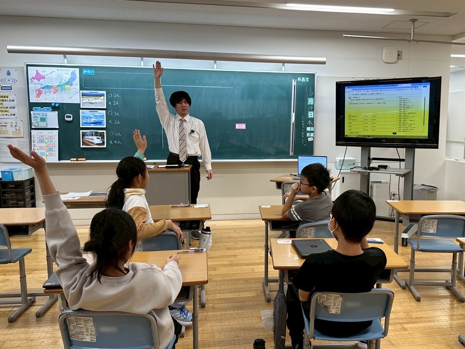 2025年11月19日(水)、広島国際空港株式会社(HIAP)の協力の下、北海道から鹿児島まで、全国各地の小学校5・6年生,計19校(27学級498名)が参加して広域交流型オンライン学習を実施しました。参加校は、広島県東広島市(郷田小、高美が丘小、中黒瀬小、福富小、豊栄小、河内小)、同竹原市(東野小、荘野小、仁賀小)、北海道利尻富士町(利尻小)、同北見市(中央小)、同釧路町(別保小)、鹿児島県徳之島町(神之嶺小、亀津小、手々小、花徳小、母間小、亀徳小、山小)です。「私たちのまちの空港の役割を考える」と題して、立地や規模の異なる3つの空港(広島、利尻、徳之島)を比較しながら、ヒトやモノの移動における空港の役割を認識し、その未来について提言することを目指しました。授業全体の進行は広島大学の草原和博教授が担当し、各教室の進行は担任が務めました。また、本時は特別ゲストとして、広島空港、利尻空港、徳之島空港の各現場で働く職員の方々にオンラインでご参加いただきました。