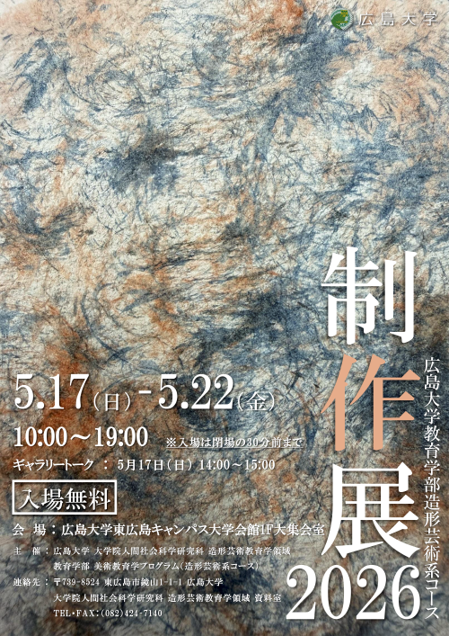 • 【2026/5/17~5/22開催・東広島】2026年度広島大学大学院人間社会科学研究科 造形芸術教育学領域2年生/教育学部 造形芸術系コース 4 年生制作展について