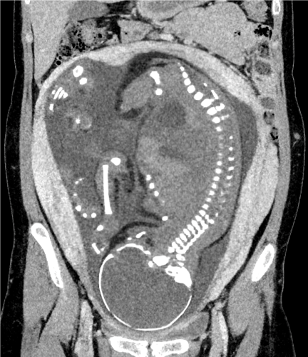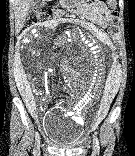 Fig. 2: Fetal CT image processed using DLR shows substantial noise reduction compared to the conventional method.