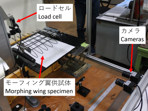 Our laboratory is also conducting research, as shown in Fig.1, to apply morphing wings to the wingtips of small UAVs comparable in size to migratory birds. As part of this effort, we have developed a technique to precisely measure the deformation state of morphing wings using stereo cameras, as illustrated in Fig. 2. The morphing wing must be designed and fabricated to exhibit the intended deformation when subjected to bending and twisting loads expected during flight. Notably, morphing wings were initially employed in the world's first powered aircraft, the Wright Flyer, designed by the Wright brothers. Moving forward, this technology is expected to regain attention in the design of small UAVs.
