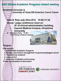 Venue:Large conference room on 3F of clinical administration building, Kasumi Medical Campus, Hiroshima University