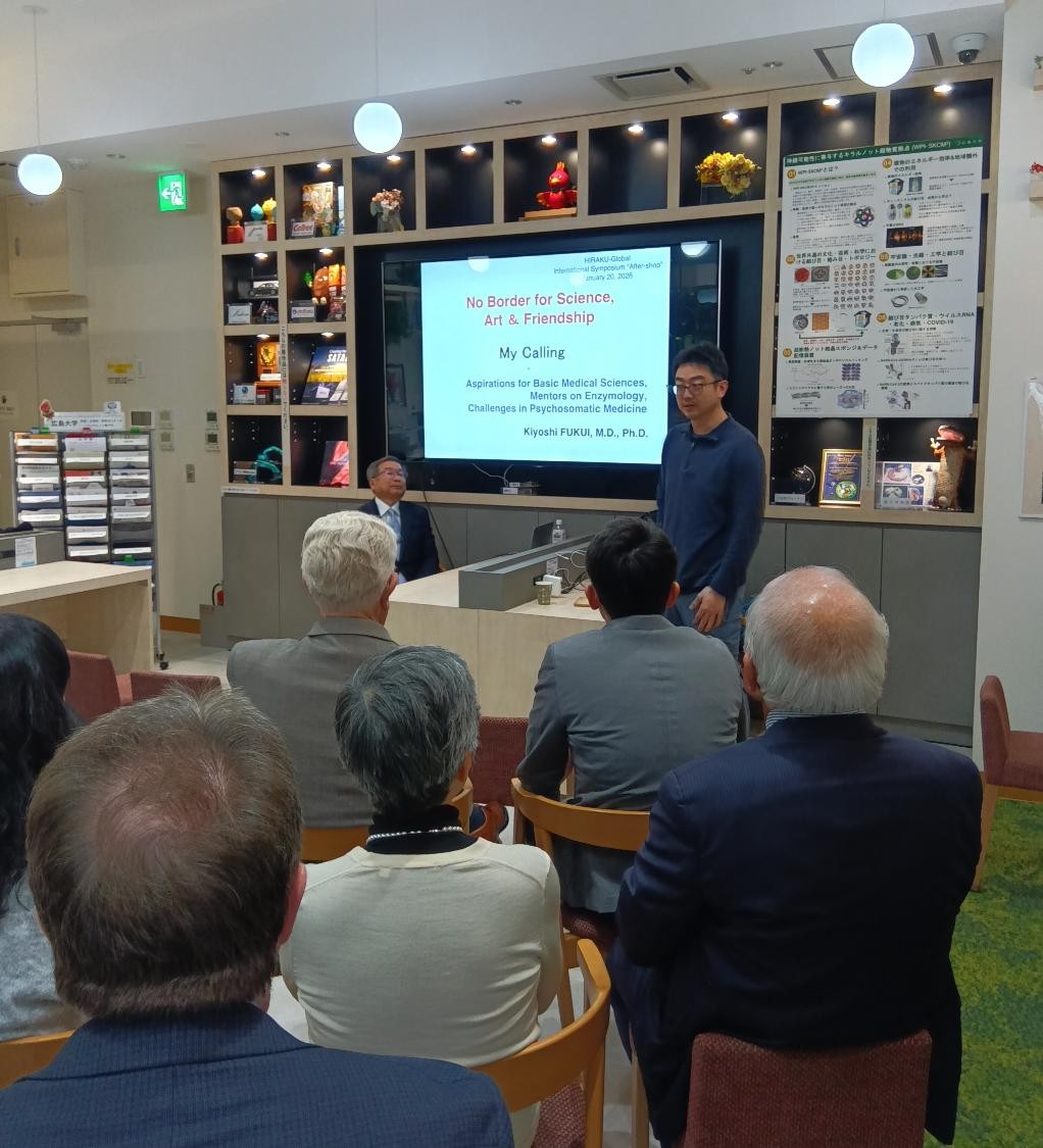 Prof. FUKUI’s presentation first focused on his training and research background in biological and medical sciences, specifically on his work characterizing an enzyme which acts on ᴅ-amino acids, mirror images of the typically biologically used ʟ-amino acids. Prof. FUKUI then talked about various international aspects of his research career. For example, he shared an example about a former student from Vietnam who went on to become a successful researcher abroad, but who never forgot their scientific roots in Japan, with Prof. FUKUI as an important figure as a former mentor in their scientific journey. Similarly, Prof. FUKUI reflected on his past experience as President of the Federation of Asian and Oceanian Biochemists and Molecular Biologists (FAOBMB). FAOBMB holds annual conferences held around Asia and Oceania, and Prof. FUKUI not only had a direct hand in organization and execution of many of these meetings, but also worked with his colleagues in FAOBMB leadership on running and growing an international scientific society. Finally, Prof. FUKUI discussed his recent experience in working with researchers in Israel who combined art and science, which culminated in the Tokushima International Science Institute Research Workshop 2024, featuring guests from the Technion in Israel and a live musical performance by one of the Israeli researchers.