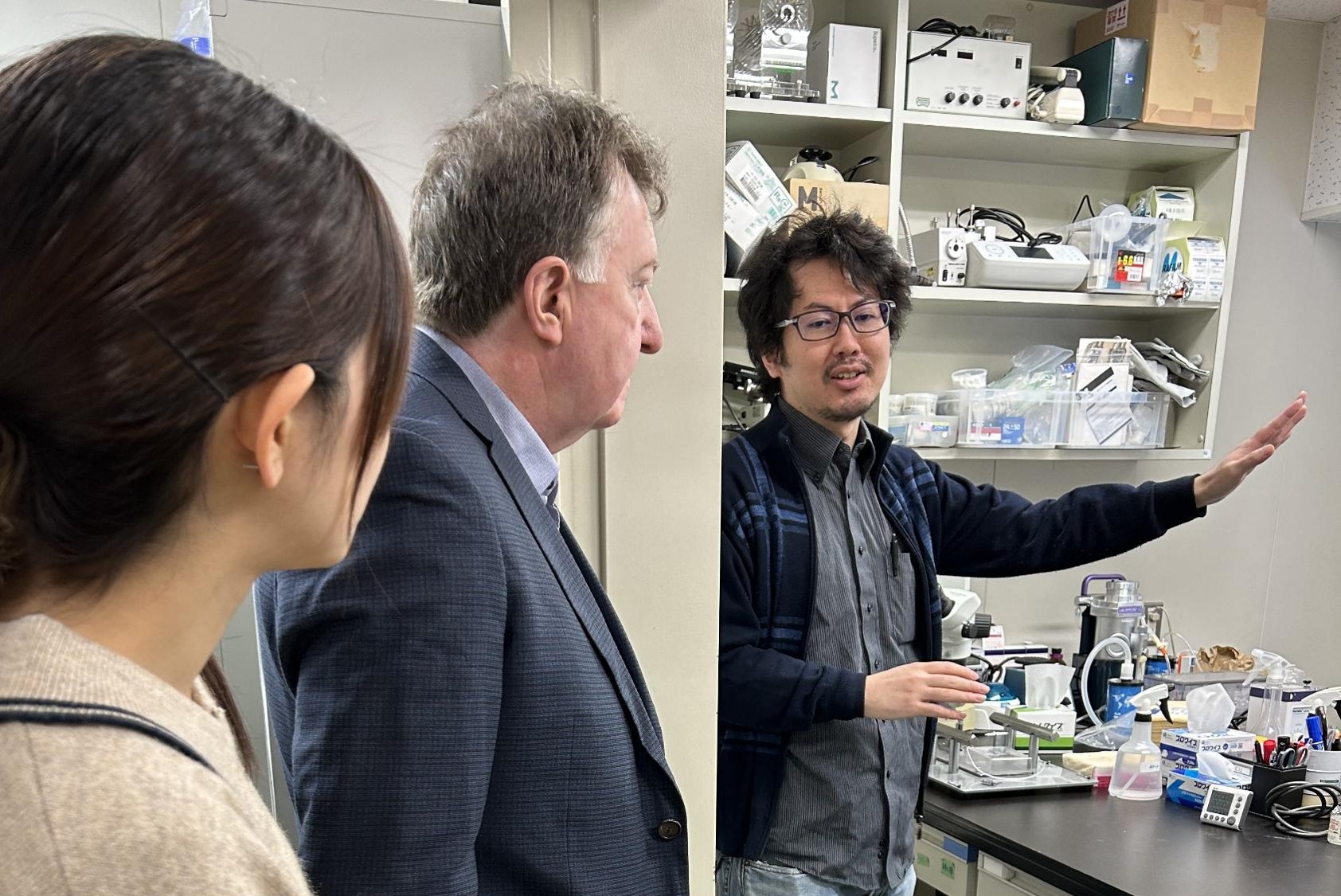 Finally, as an added bonus, Drs. HASHIMOTO Yosuke (6th Cohort HGR) and ANDO Toshinori (3rd Cohort HGR) of Hiroshima University hosted advisory board member Prof. Alastair McEWAN in their respective laboratories at the Hiroshima University Kasumi Campus following the after-shop, allowing their respective lab members to meet and speak with a well-regarded senior international researcher. The lab members of these HGRs don’t often have many opportunities to meet with international researchers, particularly those who are native English speakers, and it appeared to be a good opportunity for some of them to gain experience and confidence in English-language presentation and discussion.