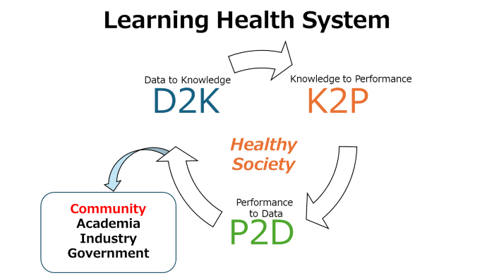 For diverse health issues, we design and implement specific interventions (performance) based on knowledge gained from data, evaluate interventions in a scientific way and build a learning health system, which is a cycle of improving health system. In data analysis, we extend and apply causal inference and data science methods, and in intervention implementation, we collaborate with various clinical, behavioural, and industrial fields to present a new era of epidemiological research.