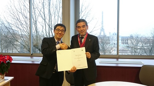 On December 14th, 2017, Hiroshima University concluded an agreement on Internship Program with the United Nations Educational, Scientific and Cultural Organization (UNESCO). This agreement was set off by the suggestion from Assistant Professor Yui Arimatsu, who is now a dispatched staff from HU to the UNESCO Headquarters. And recently, HU president Mitsuo Ochi visited the UNESCO Headquarters in Paris, France and signed the agreement with Mr. Hong Kwon, the Director of UNESCO Bureau of Human Resources Management.