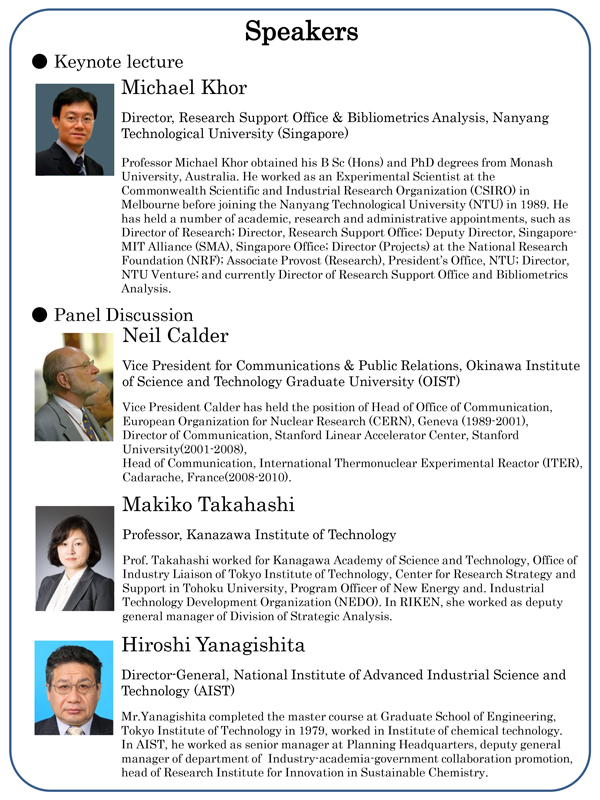 15:30 Panel Discussion with the External Assessment Committee members “How to Accelerate our Enhancement of Research Capability: Striving for Glocal Collaborations”