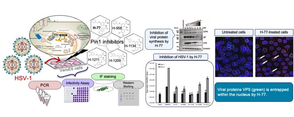 Pin1 inhibitors suppress HSV-1 replication by inhibiting viral protein synthesis and preventing nucleocapsid egress from the nucleus. (Takemasa Sakaguchi/Hiroshima University)