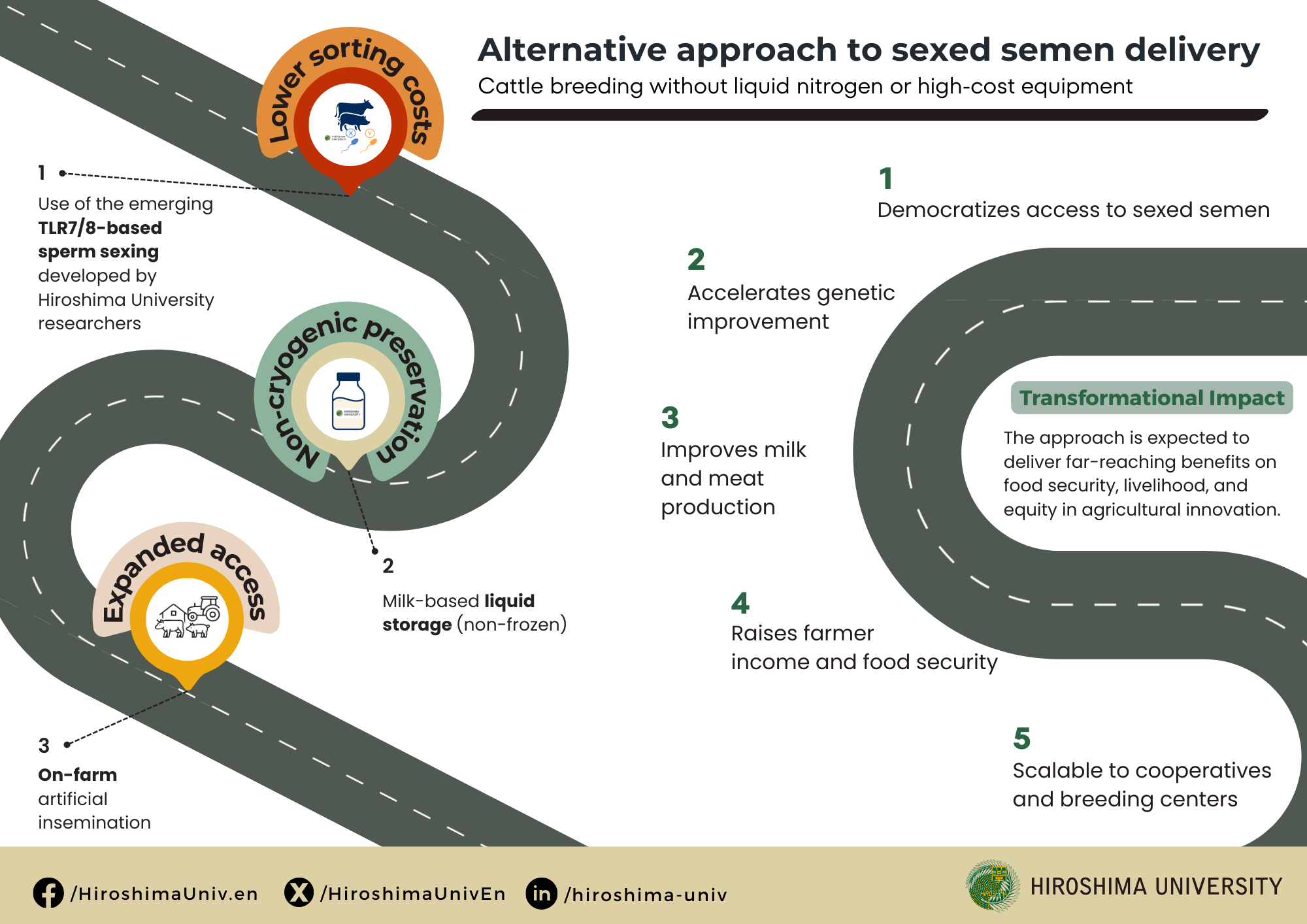 A Hiroshima University-led project has secured a $1.8 million grant from the Gates Foundation to develop a way to store bull semen using simple refrigeration instead of costly liquid nitrogen, a shift that could remove a major barrier to modern dairy cattle breeding that has long excluded farmers in low-resource regions. If successful, the technology is expected to deliver far-reaching benefits on food security and livelihoods in local communities.