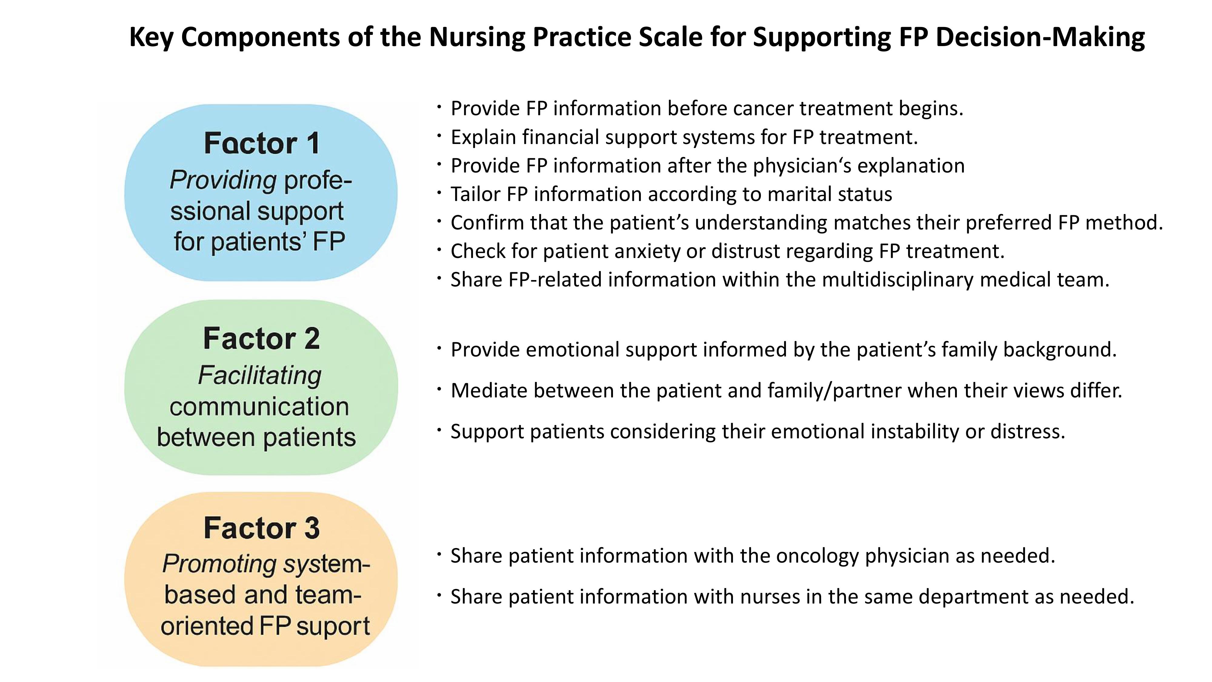Hiroshima University researchers have developed, tested and validated a survey-based scale to systematically assess nursing practices that support FP decision-making in women with cancer, in Japan. This scale may be able to evaluate and enhance nursing practices that support FP measures.