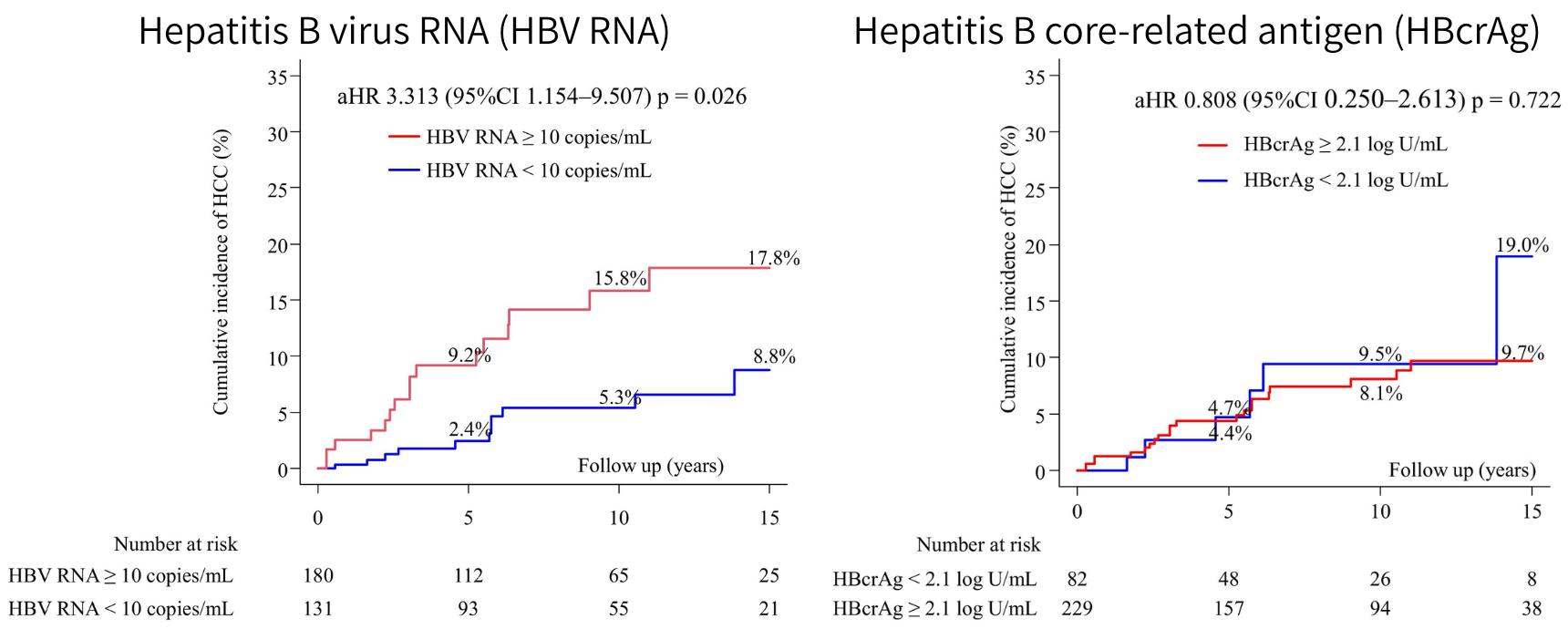 “Our study demonstrates for the first time that among patients with undetectable HBV DNA, those who test positive for serum HBV RNA have a significantly higher risk of developing HCC. We found that HBV RNA shows better predictive performance than HBcrAg,” Kumada said.