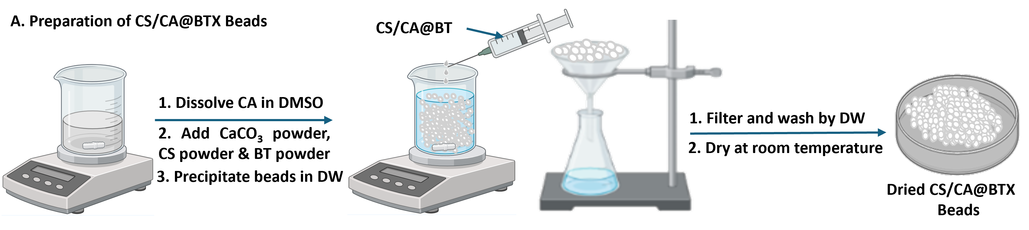 Synthesis of the chitosan/cellulose acetate@bentonite (CS/CA@BT) composite beads (Farag et al. Polymers for Advanced Technologies, March 17, 2026)