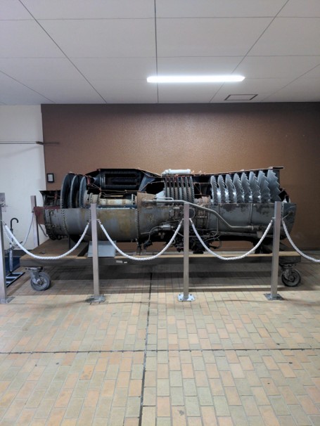 展示用カットモデルで、革新的な2軸式圧縮機、燃焼室、タービンなどを確認することができる。