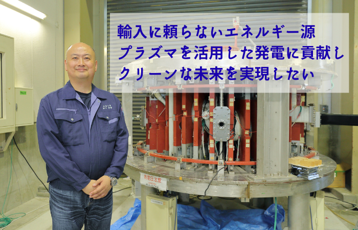 水素同位体をプラズマ状態にし、超高温・超高密度で一定時間ある場所に閉じ込めると、軽い原子核同士が核反応を起こして重い原子核に変わるフュージョン (核融合) 反応が生じます。これを人工的に連続して起こし、発生した莫大なエネルギーを利用する発電方法をフュージョン発電と言います。私はそのフュージョン発電に貢献し、カーボンニュートラルを実現することを目的として研究を進めています。