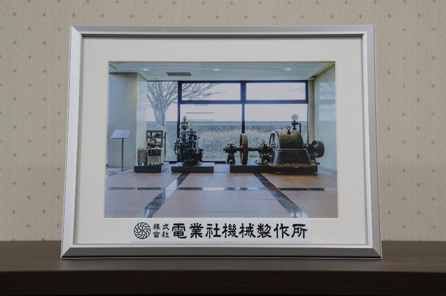 昨年11月、工学部で「工学遺産」として展示していた単輪単車ペルトン水車について、同水車を製作された企業を前身に持つ同社へ寄贈した経緯があり、この度、三島事業所本館エントランスに同水車を展示されたとのことで、その様子を収めた写真パネルをご恵与いただいたものです。