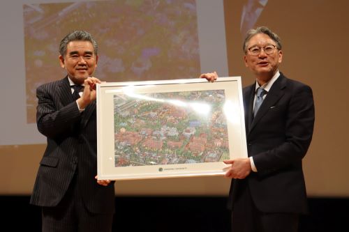 今回の講演は、日本自動車工業会主催で、会員各社の経営トップをはじめとした多彩な講師陣が若い世代の人々に車・バイク、ものづくりの魅力を直接語りかける「大学キャンパス出張授業」として毎年実施されているもの。三部社長にとっては、1987年に本学の大学院を修了して以来はじめてのキャンパス訪問となりました。