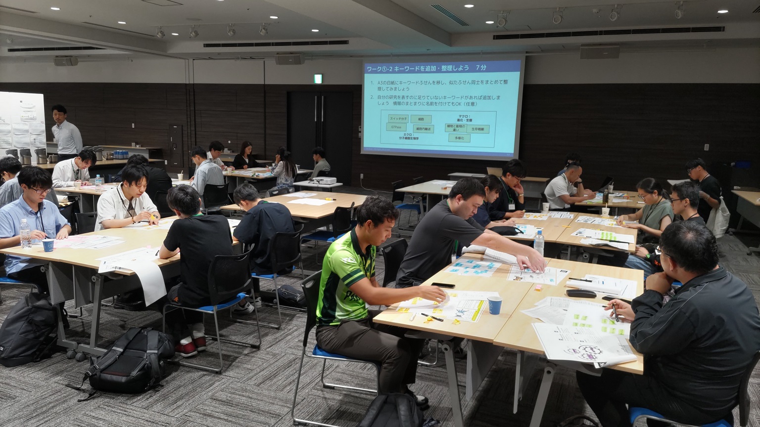 また、9月23日には「共同研究の創出支援ワークショップ」も同時開催され、27人が参加しました。フェローが自身の研究テーマを広い視野で見直し、他分野の知見と柔軟に結び付ける力を養うことを目的とした本ワークショップでは、分野を超えた対話と発想の転換が促されました。