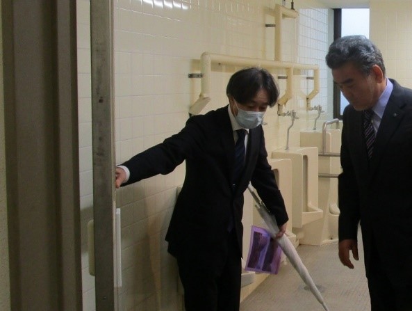当日は、校長、副校長から翠地区附属学校を取り巻く現状や課題等について説明を行った後、授業や学校内の老朽化や安全対策が必要な施設等校内13箇所を視察し意見交換を行いました。