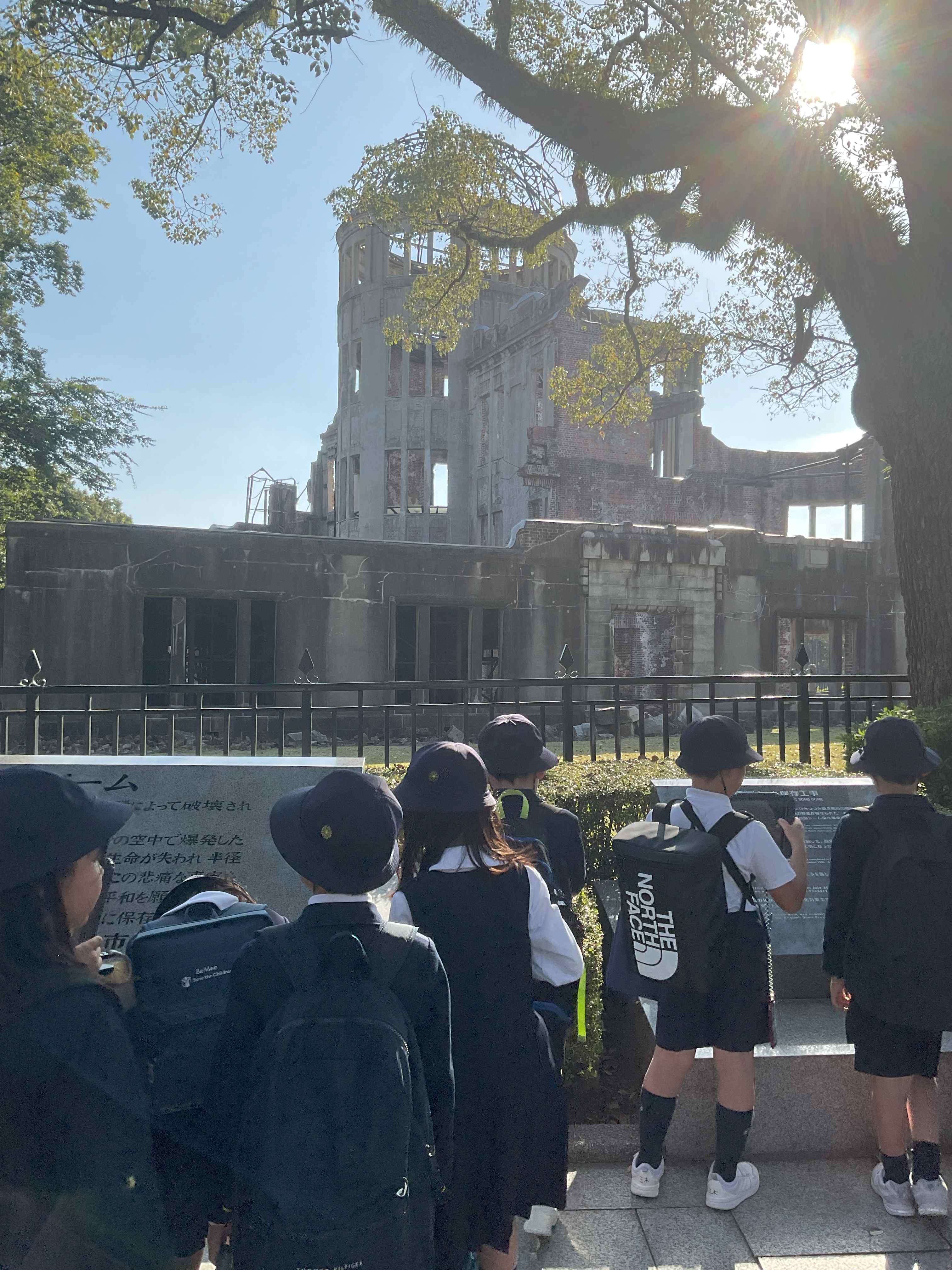 第4学年後期、「学校の歴史・平和」をテーマに学習を行いました。本校120周年記念にあたる今年、本校の卒業生(50代~90代)にお越しいただき、当時の様子や戦時中の学童疎開の話を聞きました。学校の歴史や戦争により生活の変化や大変さについて理解を深め、自分たちなりに考えた身近な平和を言葉や身体、展示などで表現したことは、自分事として探究する経験になりました。そこから平和祈念資料館、平和公園へとヒロシマについての探究へと広げていきました。