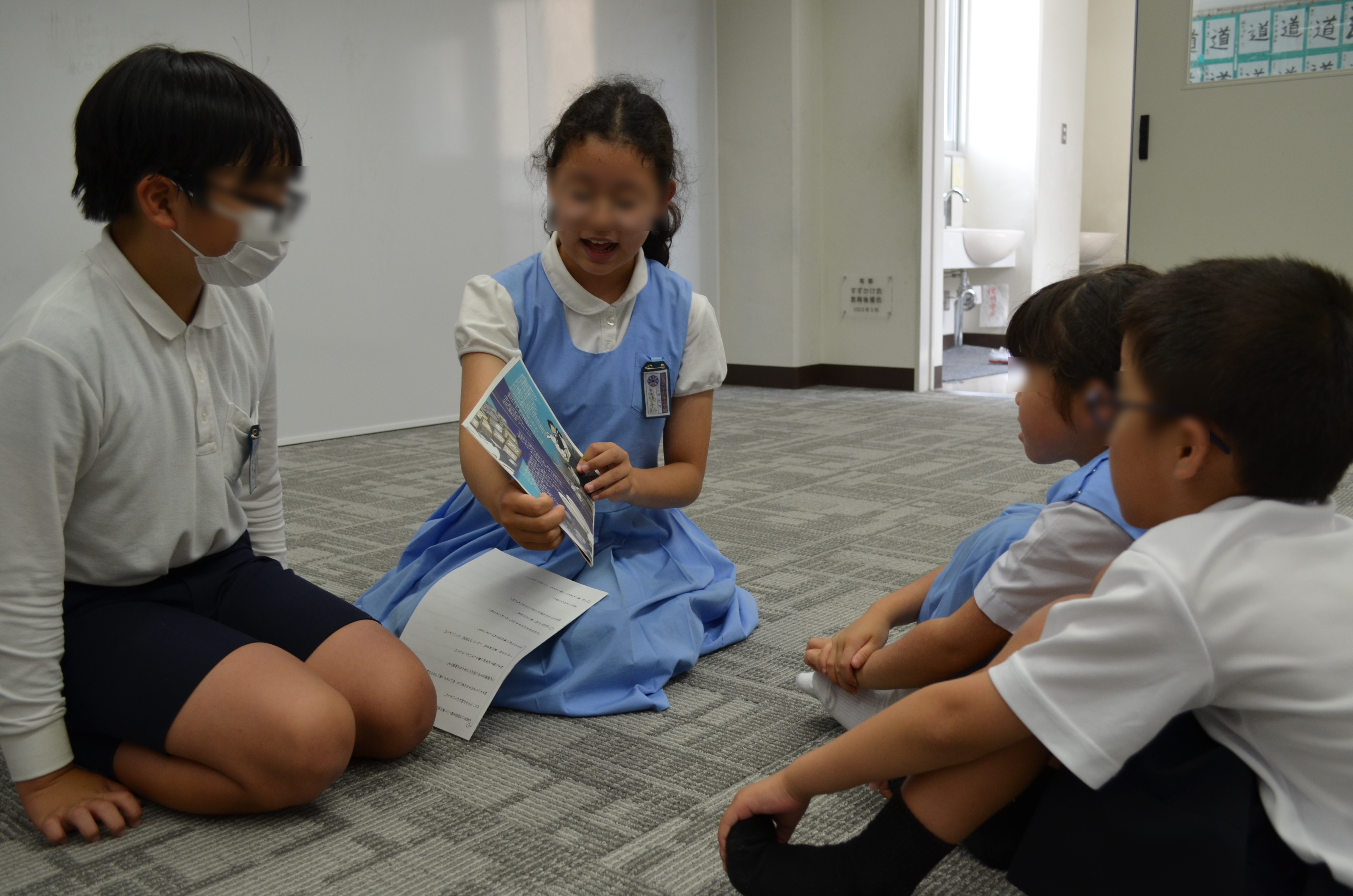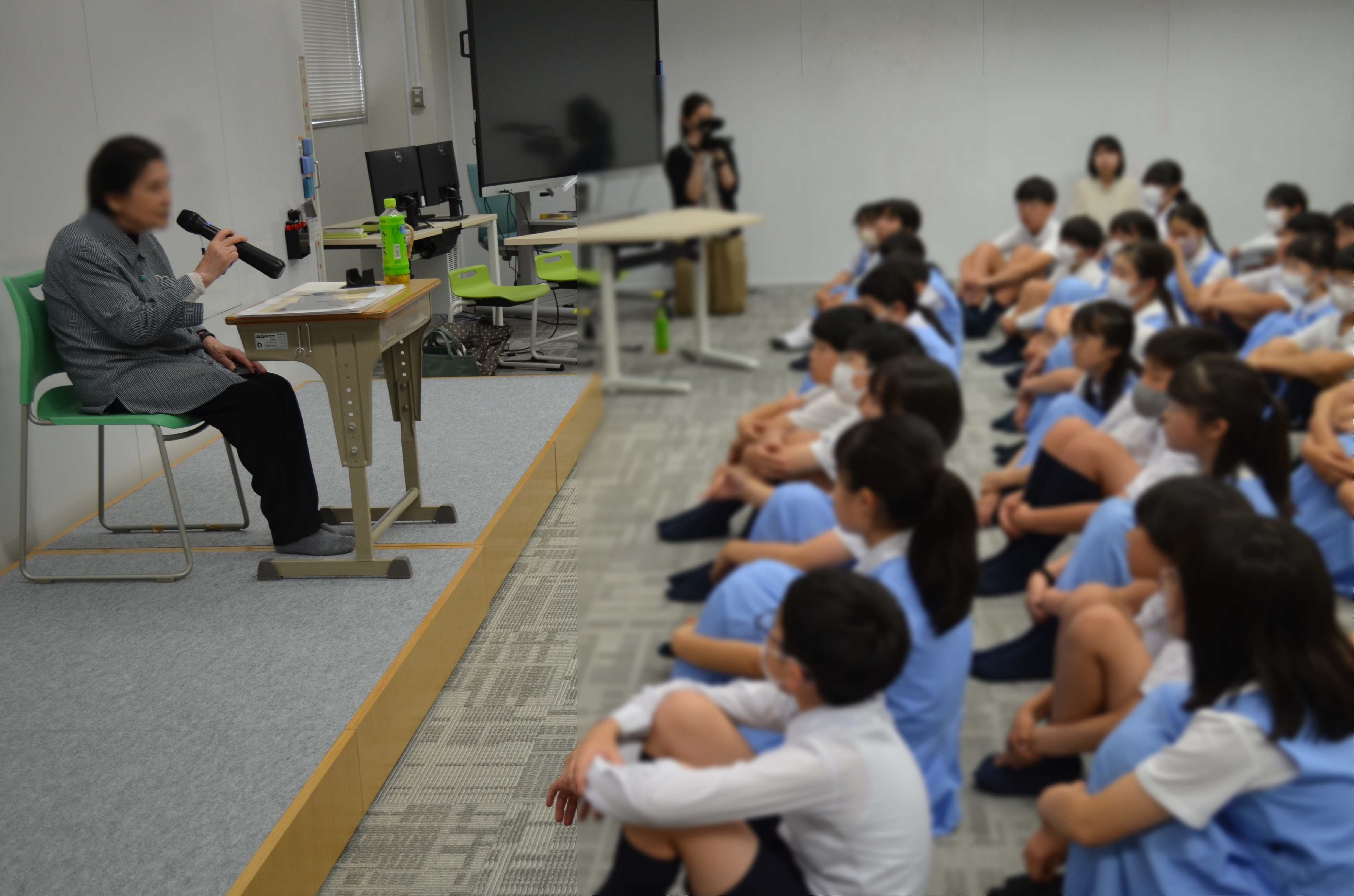 第6学年前期では、主に平和をテーマにした学習を行っています。これまで3年生から学習してきた内容を踏まえ、初めて被爆者の方の被爆証言講話をお聞きしました。お話を聞いたのはこれまで3年生からずっと継続して学んできた切明千枝子さんのお話です。お話を聞くことでこれまで学んできたことをより想像力を膨らませて捉え直すことができたり、分かっていたようで分かっていなかったことに気づいたりすることができました。また、この学習を受け、切明さんの体験をもとにした紙芝居「8月のうさぎ」を1年生に読み聞かせることにも取り組みました。自分の言葉で、自分の考えや気持ちも加えながら、相手に伝わるように発信することに、一人一人が挑戦することができました。