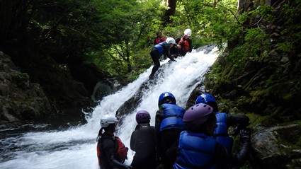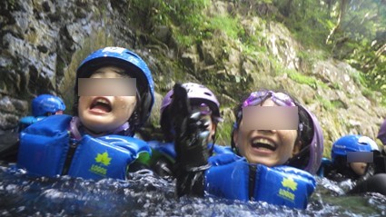 シャワークライミングでは、日々の暑さを忘れて、川の水の気持ちよさを感じていました。