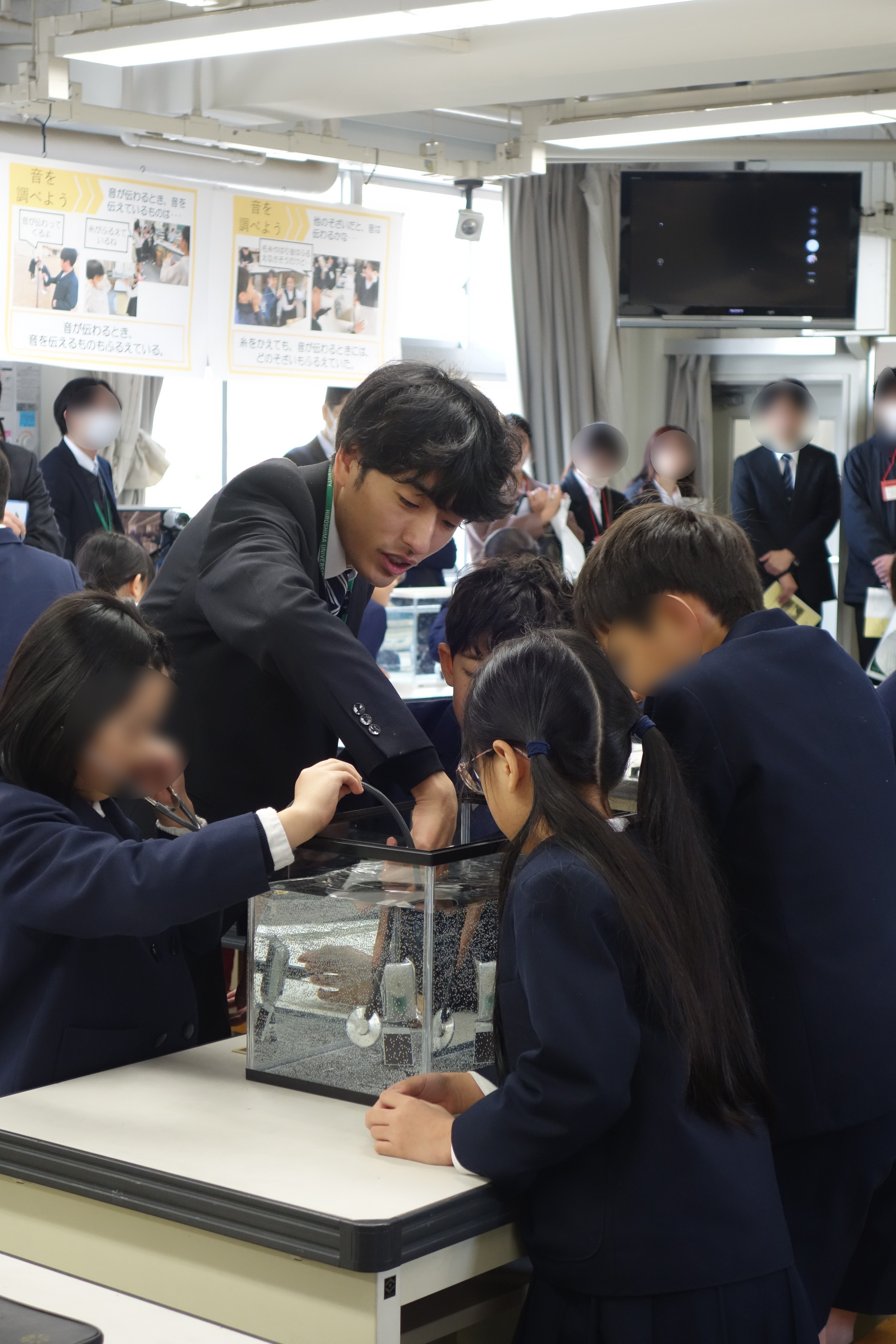 実際に水の振動を見た際には、子ども達から驚きの声が上がっていました。