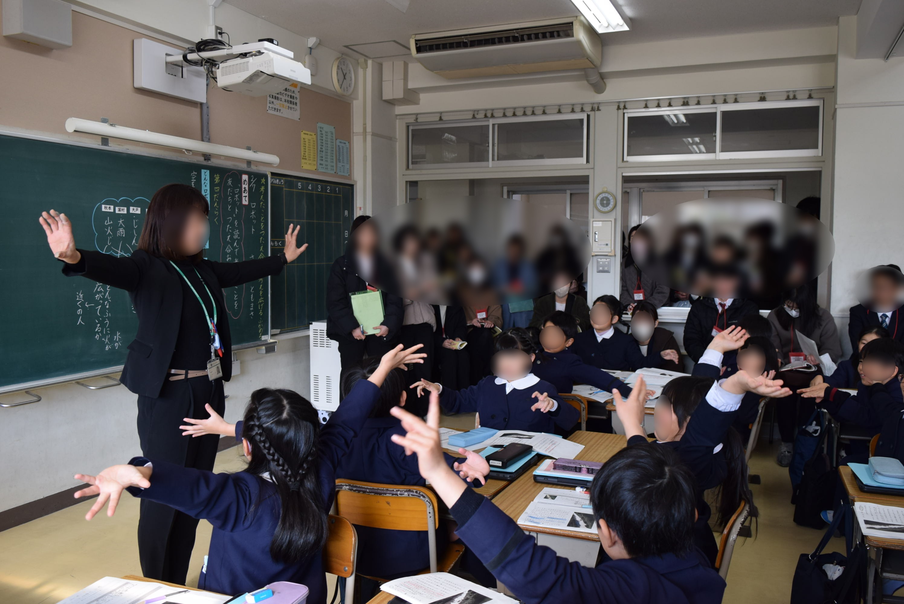 2年「考えたことを伝えあおう(ロボット)」では、文章を読んで考えたことを伝えあう学習に取り組みました。子ども達は、学習を踏まえながらこんなロボットがあったらいいな…と考えて、熱心に友達に伝えあっていました。