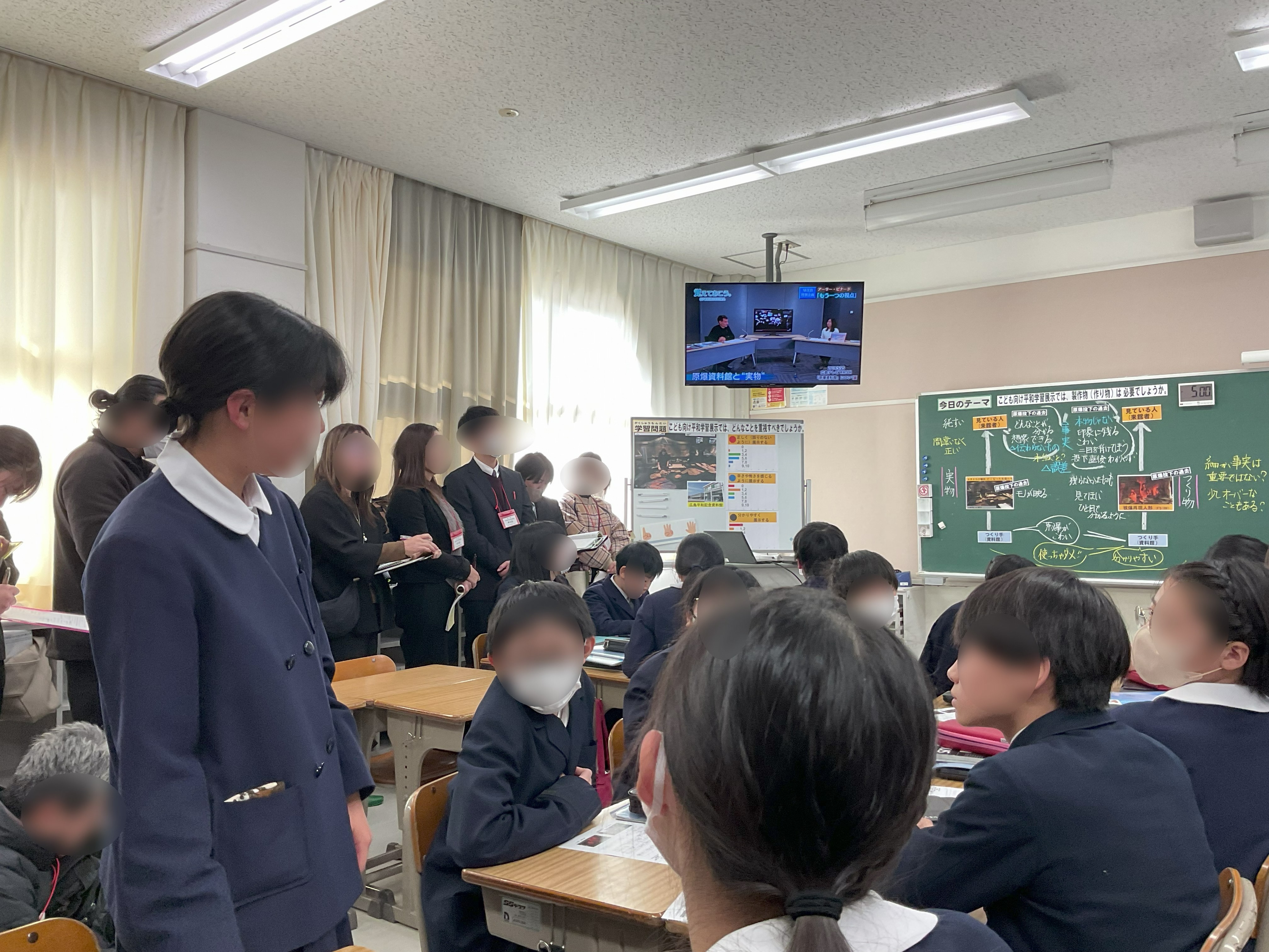 6年「アジア太平洋にひろがる戦争(2)」では、子ども達が広島市の平和記念資料館の被ばく再現人形の撤去問題について議論しました。現在の展示の意図や関係者のインタビューも参考にしながら、子ども達は自分の意見を形成していきました。