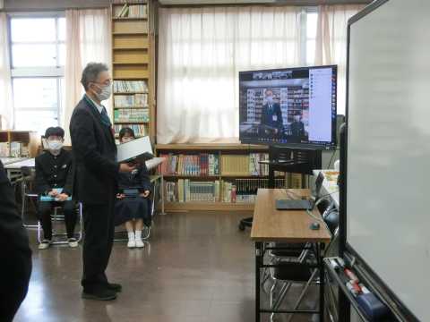 リモートで修了式,非常勤講師の先生の離任式,学校集会がありました。