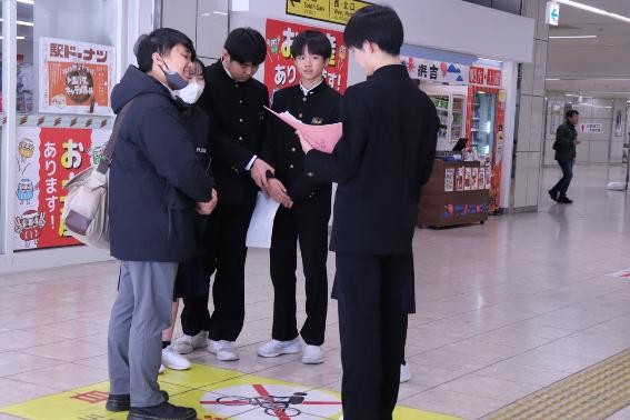 インタビューでは、生徒の質問に快く答えてくださる方や、逆に生徒に質問をしてくださる方もおり、多くの外国人観光客の皆様にご協力いただきました。電車やバスの時間の都合により、インタビューにご協力いただけない場面もありましたが、生徒たちは気持ちを切り替え、最後まで前向きに活動に取り組んでいました。限られた時間の中で、よく頑張っていたと思います。
