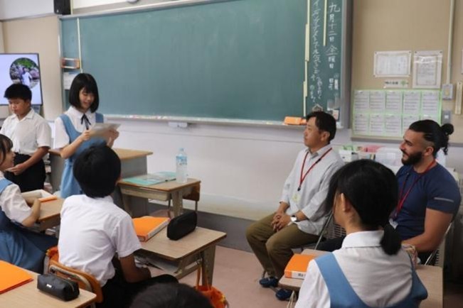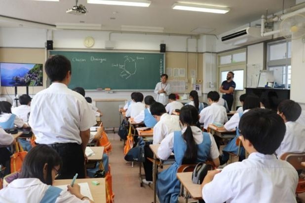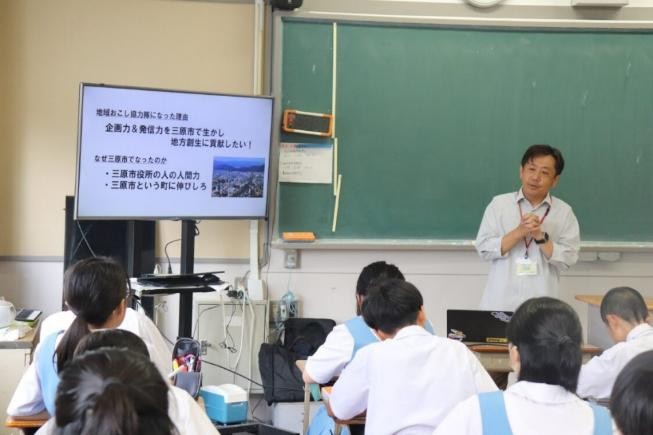 そこで三原市地域おこし協力隊の麻倉良一さん、ドミンゲズ・シャジムさんに来ていただき、普段の活動や地域おこし協力隊に参加したきっかけ、思いなどを話していただきました。また、たくさんの質問に詳しく丁寧に答えていただき、今後の学習の参考になることをたくさん学ぶことができました。