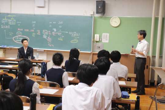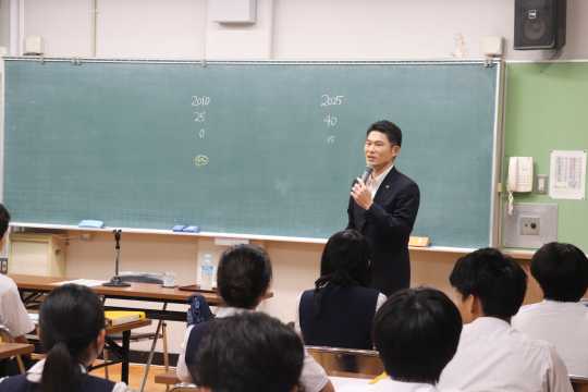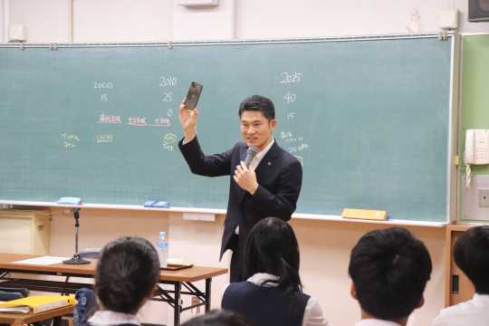 この度,9年生を対象に,本校卒業生の岡田 吉弘 三原市長にお越しいただき,進路講演会を実施しました。