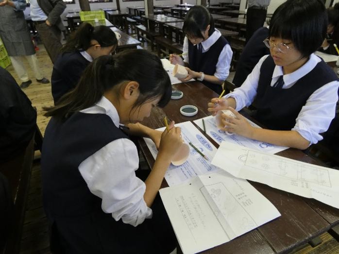 絵付けしたものはこの後焼かれ、後日学校へ届きます。完成が楽しみです。