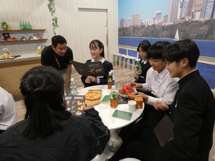 レストランで商品を注文する、スタジオでアナウンサーや気象予報士になりきって説明する、などこの施設では全てのコミュニケーションを英語で行いました。普段英語の授業で学んでいることが生かされたのではないでしょうか。