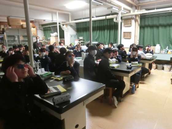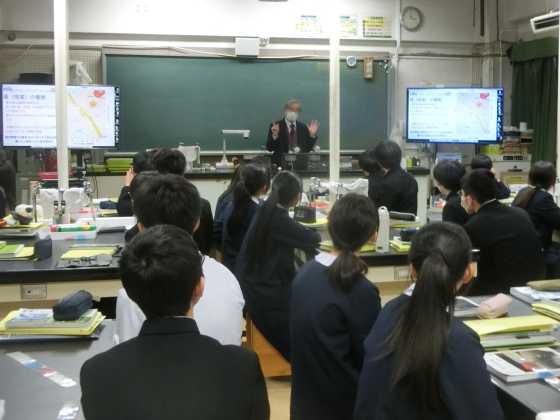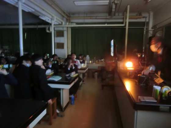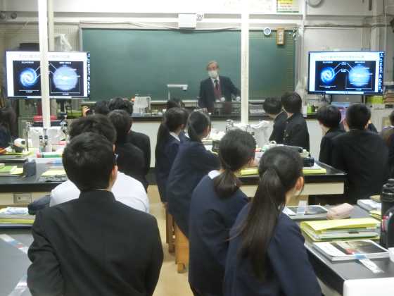 9年の理科において,広島大学名誉教授の林 武広 先生による特別講義を行いました。(藤川 義範 先生もアシスタントとして,実験の準備など支援や協力をいただきました。)