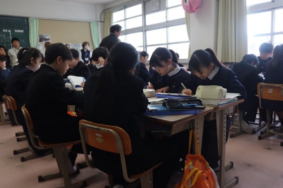 7年生では国語と美術、8年生では英語と音楽、9年生では数学と社会の授業参観を行いました。どの授業も生徒たちが意欲的に取り組んでいる姿が見られました。