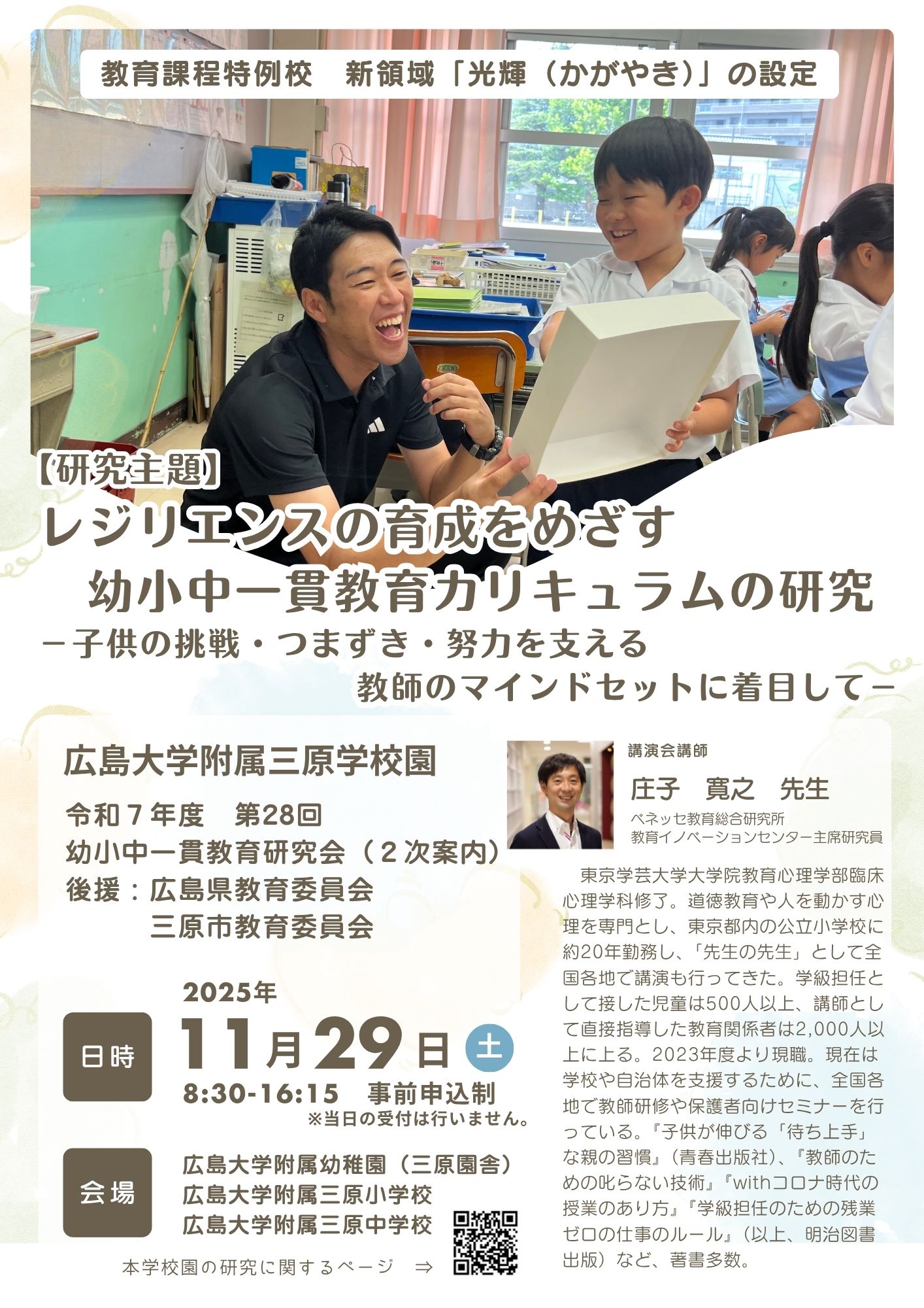 令和7年度第28回幼小中一貫教育研究会における国語科の指導助言者が、下記のとおり変更となりました。