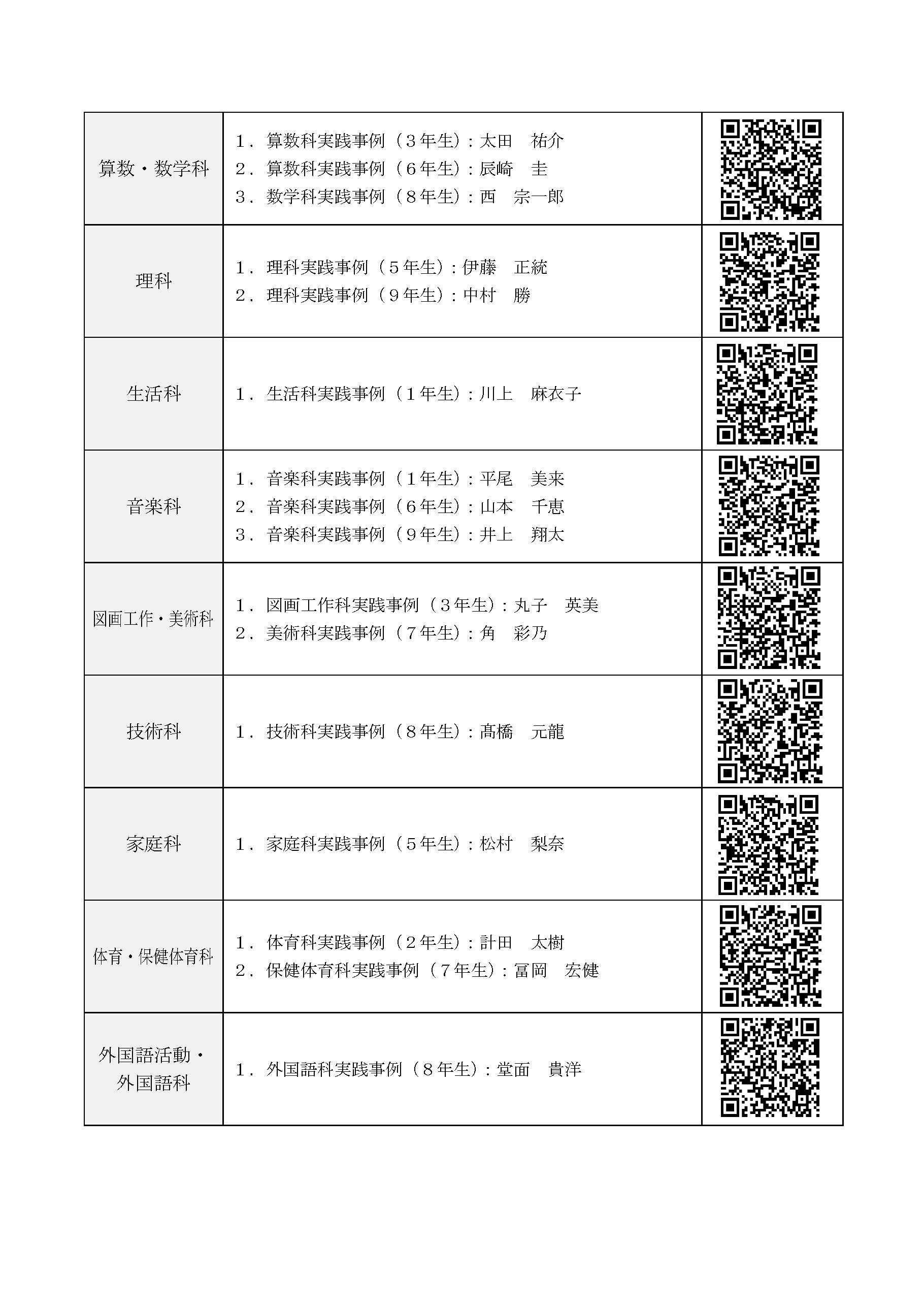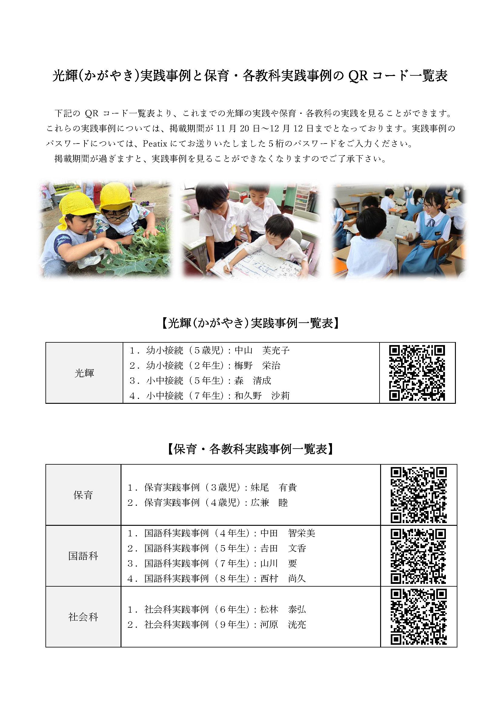 光輝(かがやき)実践事例と保育・各教科実践事例のQRコード一覧表