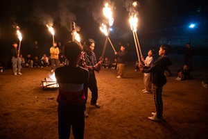 2日目は、班対抗モルック、野外炊飯(ごはんと豚汁)、キャンプファイヤーを行いました。1日目の班活動での反省をいかして、班の人と協力しながらモルックや野外炊飯を行うことができました。更に、キャンプファイヤーでは、班ごとに出し物をして、班の人との協力が見られる2日目となりました。